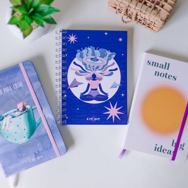A coleção ✷ fluir para criar ✷ foi a terceira coleção da Creare! Esta coleção lançou o nosso querido pilar de papelaria e foi composta por 2 moleskines e uma agenda colegial.